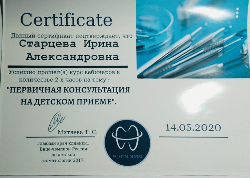 Ирина Александровна является стоматологом. Она помогает пациентам принимать правильные решения, касающиеся их здоровья, и обеспечивает им требуемую помощь и поддержку. К Ирине Старцевой стоит обратиться, чтобы разобраться в сложных медицинских вопросах, выяснить причину заболевания, узнать о методах его терапии и профилактики.